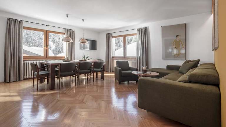 Die Unterkunft befindet sich in Wolkenstein in Gröden und bietet direkten Zugang zur Skipiste, wodurch eine Kombination aus Ski- und Fahrradtourismus ermöglicht wird.