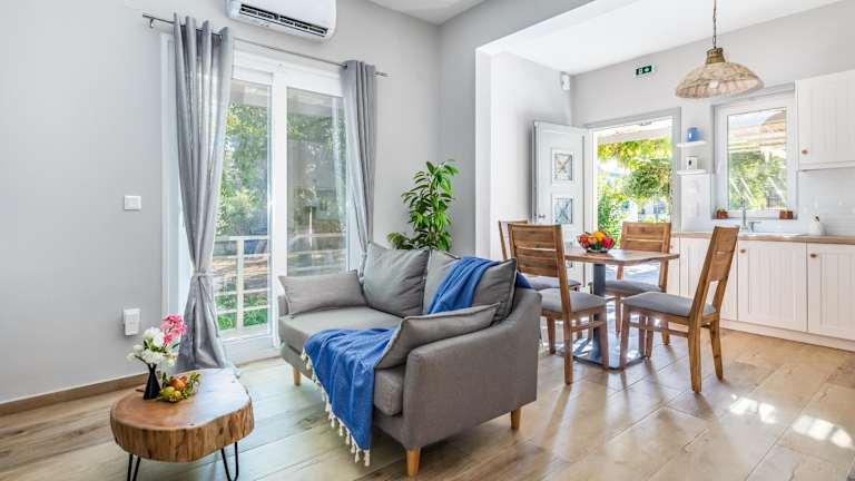 Die Unterkunft Artemis' Garden bietet Gästen kostenfreies WLAN, eine Klimaanlage sowie einen Garten und Grillmöglichkeiten. Darüber hinaus steht den Gästen eine Terrasse mit Bergblick zur Verfügung, die eine entspannte Atmosphäre schafft.