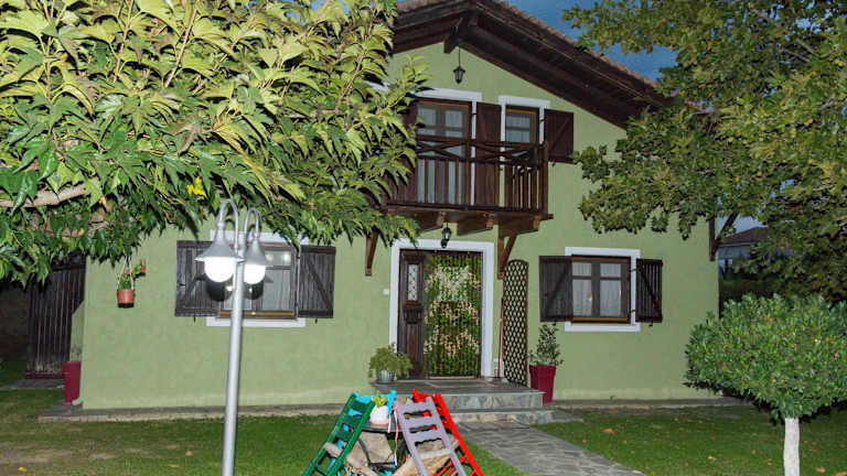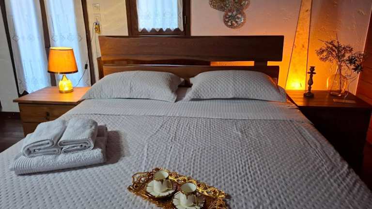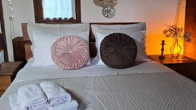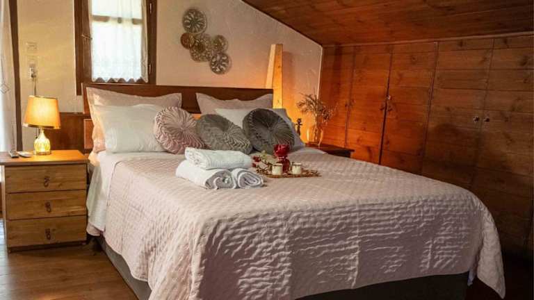Das Chalet im Arxontiko Palamas verfügt über ein gemütliches Schlafzimmer, eine gut ausgestattete Küche mit Kühlschrank und Backofen sowie einen komfortablen Sitzbereich. Ein Flachbild-TV sorgt für Unterhaltung. Das Badezimmer ist mit einem Bidet ausgestattet und Handtücher und Bettwäsche werden gestellt.