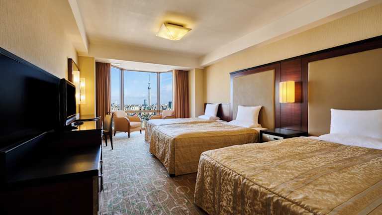 Die modernen Zimmer im Asakusa View Hotel sind im Art-déco-Stil gestaltet und verfügen über raumhohe Fenster, die viel natürliches Licht hereinlassen. Die Zimmer sind gemütlich eingerichtet und bieten Annehmlichkeiten wie kostenloses WLAN, einen Flachbild-TV und ein eigenes Bad mit einer Badewanne, einer Dusche und kostenlosen Pflegeprodukten. Genießen Sie den Komfort und die stilvolle Atmosphäre dieser Zimmer während Ihres Aufenthalts in Tokio.
