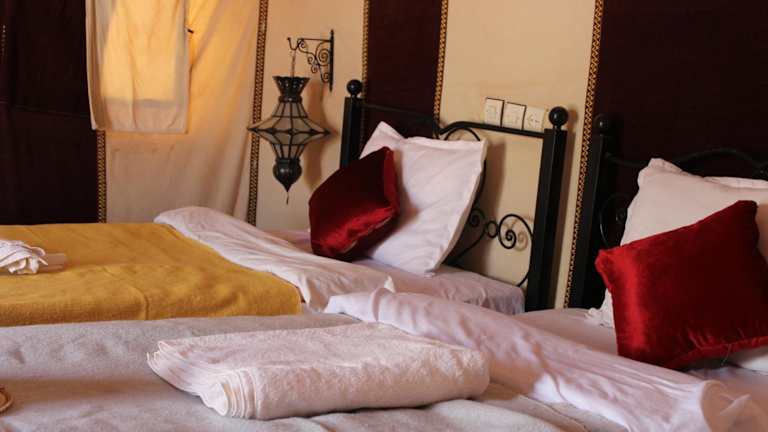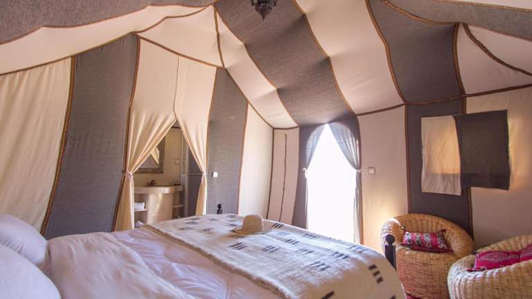 Das Asama Luxury Camp bietet luxuriöse Zelte, die speziell für Ihren Komfort und Ihr Wohlbefinden gestaltet wurden. Jedes Zelt ist elegant eingerichtet und verfügt über ein komfortables Bett, ein eigenes Badezimmer und moderne Annehmlichkeiten. Genießen Sie die authentische Atmosphäre der Wüste, ohne auf Komfort und Luxus verzichten zu müssen.