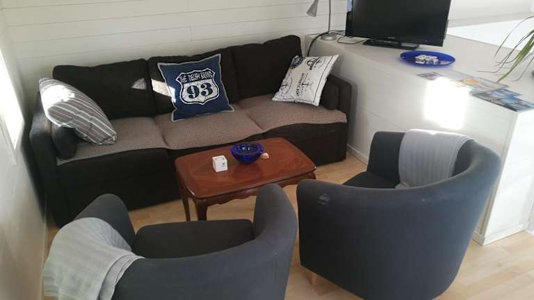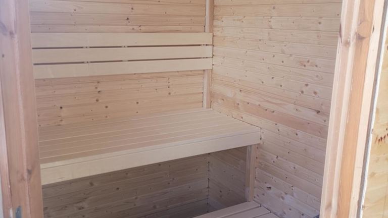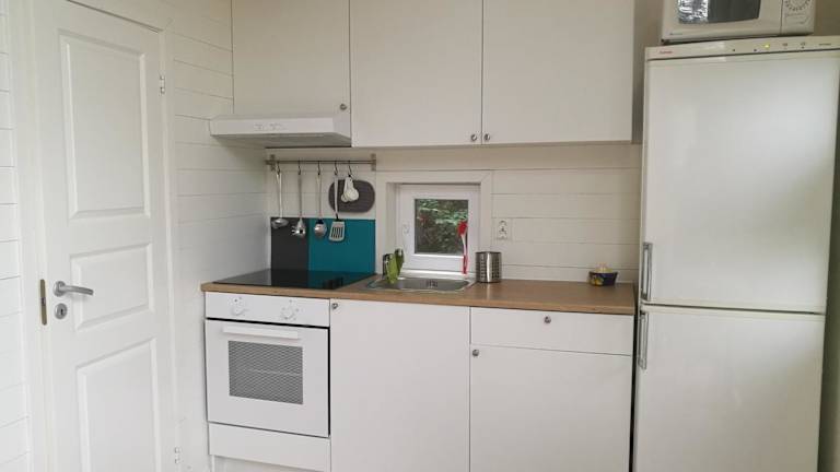 Das Ferienhaus verfügt über ein gemütliches Schlafzimmer, ein geräumiges Wohnzimmer und eine voll ausgestattete Küche mit einem Kühlschrank und einem Essbereich. Das Badezimmer ist modern und komfortabel. Handtücher und Bettwäsche werden gestellt, sodass Sie sich um nichts kümmern müssen. Ein Highlight des Ferienhauses ist die Sauna, in der Sie sich nach einem aktiven Tag entspannen können.