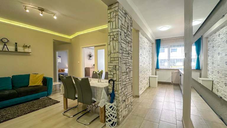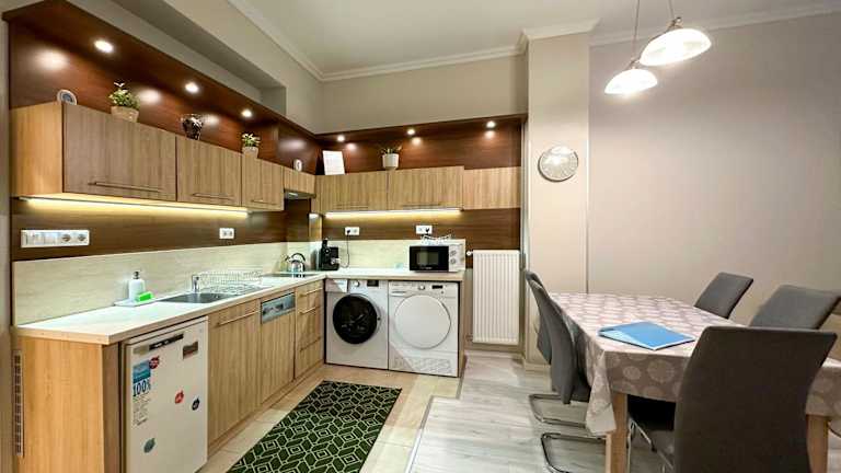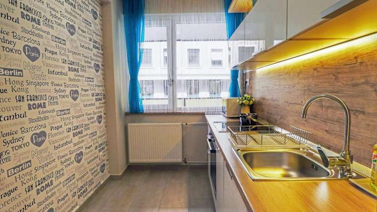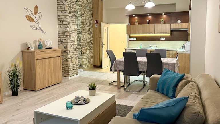 Das Apartment im Asbóth Budapest verfügt über 2 Schlafzimmer, die genügend Platz für eine komfortable Übernachtung bieten. Der Wohnbereich ist mit einem gemütlichen Sofa und einem Flachbild-Kabel-TV ausgestattet, so dass Sie sich nach einem langen Tag in der Stadt entspannen können. Die Küchenzeile ist voll ausgestattet und verfügt über einen Geschirrspüler und einen Esstisch, so dass Sie Ihre Mahlzeiten bequem zubereiten und genießen können. Kostenloses WLAN steht Ihnen im gesamten Apartment zur Verfügung.