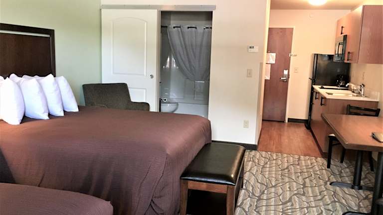 Die Zimmer im Aspen Suites Hotel Haines sind geräumig und komfortabel. Jedes Zimmer verfügt über eine Küchenzeile, einen Sitzbereich und einen Flachbild-Kabel-TV. Das eigene Bad ist mit kostenfreien Pflegeprodukten, einer Dusche und einem Haartrockner ausgestattet. Bettwäsche und Handtücher werden gestellt.