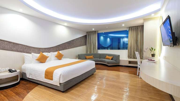 Das Aston Cirebon Hotel and Convention Center ist eine moderne Unterkunft, die 2012 eröffnet wurde. Es bietet eine freundliche Atmosphäre mit einem umfangreichen Serviceangebot. Die Einrichtung umfasst unter anderem eine Gepäckaufbewahrung, einen Safe, ein Fitnesscenter, einen Garten, und eine Sonnenterrasse. Die insgesamt 200 Zimmer erstrecken sich über 12 Stockwerke und sind mit verschiedenen Annehmlichkeiten ausgestattet.