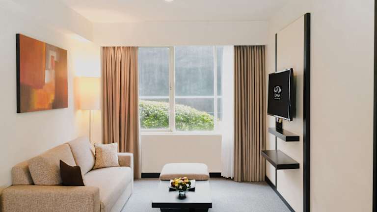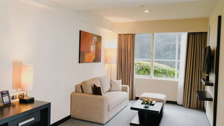 Die modern ausgestatteten Zimmer verfügen über Klimaanlage, ein Queensizebett, ein Sofabett, einen Safe, eine Minibar, einen Schreibtisch sowie Kaffee- und Teezubehör. Darüber hinaus gibt es eine Dusche und eine Badewanne im Badezimmer, in dem auch Bademäntel und Kosmetikartikel bereitstehen. Zusätzlich sind Zustellbetten auf Anfrage buchbar.