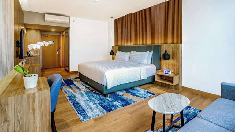 Die klimatisierten Zimmer sind mit einem Schreibtisch, einem Wasserkocher, einer Minibar, einem Safe, einem Flachbild-TV und einem eigenen Badezimmer mit Dusche ausgestattet. In jedem Zimmer sind Bettwäsche und Handtücher vorhanden.