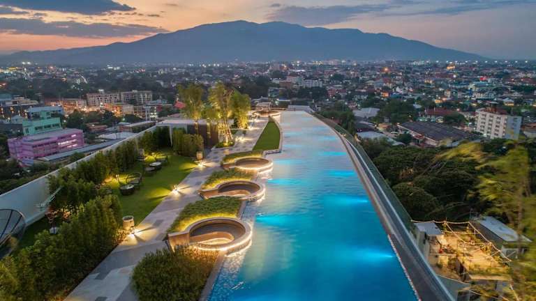 Astra Sky River Paronama Pool Luxury Changklan Chiang Mai bietet Übernachtungsmöglichkeiten mit kostenlosem WLAN und Klimaanlage. Die Unterkunft stellt einen Garten mit einem Außenpool zur Verfügung und verfügt zudem über eine Sauna für die Gäste.