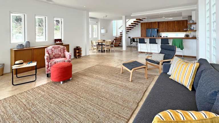 At the Beach Spacious 2-level Design Home for 2-5 und 1 Kind unter 3 Jahren ist eine Ferienwohnung, die durch ihren Meerblick besticht. Die Unterkunft bietet eine Terrasse, kostenlosen Privatparkplatz und WLAN. Die Check-in-Zeiten sind von 15:00 bis 23:30 Uhr und der Check-out von 06:00 bis 11:00 Uhr. Junggesellenabschiede sind nicht gestattet und der Mindestalter für den Check-in beträgt 18 Jahre.