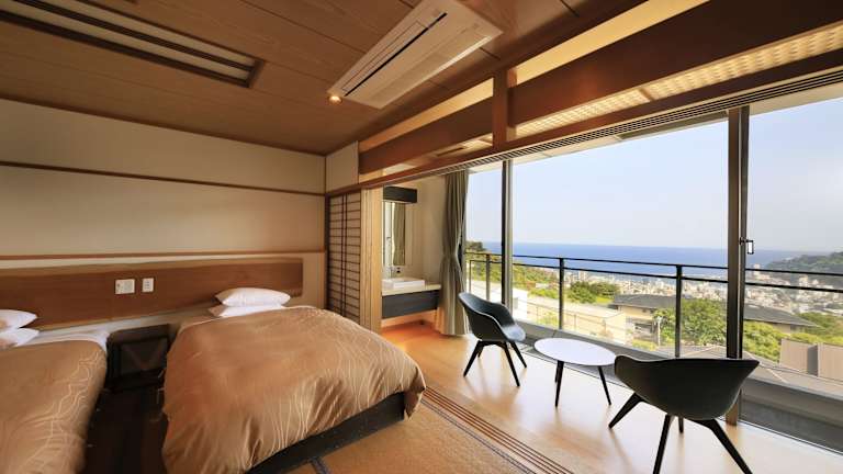 Atami Fuga ist ein Ryokan, der Übernachtungsmöglichkeiten mit einem Garten, kostenlosem Privatparkplatz, Gemeinschaftslounge und Terrasse bietet. Zu den Annehmlichkeiten gehören eine Sauna, eine 24-Stunden-Rezeption und kostenfreies WLAN.