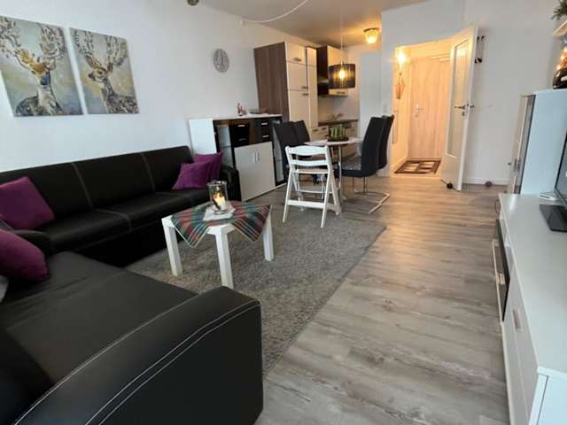 Die Ferienwohnung umfasst 1 Schlafzimmer, ein Wohnzimmer mit einem Flachbild-TV, eine gut ausgestattete Küche mit Kühlschrank und Geschirrspüler sowie ein Badezimmer mit Badewanne. Die Terrasse bietet einen schönen Blick auf die Berge. Handtücher und Bettwäsche können bei Bedarf gegen Aufpreis bereitgestellt werden.