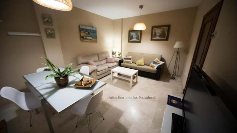 Das klimatisierte Apartment im Ático Barrio de los Pescadores bietet Platz für bis zu 4 Personen. Es verfügt über 2 Schlafzimmer, ein Wohnzimmer und eine voll ausgestattete Küche mit Kühlschrank und Kaffeemaschine. Das Apartment verfügt über ein Badezimmer mit Dusche und Badewanne. Handtücher und Bettwäsche werden gestellt, um Ihnen einen komfortablen Aufenthalt zu ermöglichen.