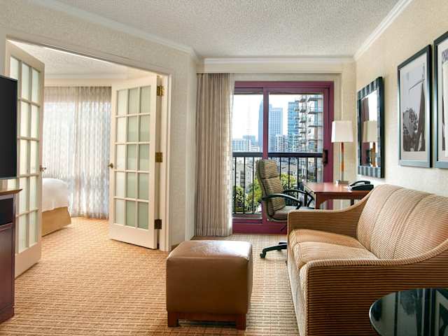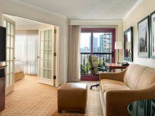 Die Suiten im Atlanta Marriott Suites Midtown bieten eine stilvolle und komfortable Unterkunft für Gäste. Jede Suite verfügt über ein Sofa, einen Flachbild-TV mit dem HBO-Filmkanal, eine Kaffeemaschine und einen Kühlschrank. Französische Doppeltüren trennen das Schlafzimmer vom Wohnbereich und sorgen für Privatsphäre und Komfort.