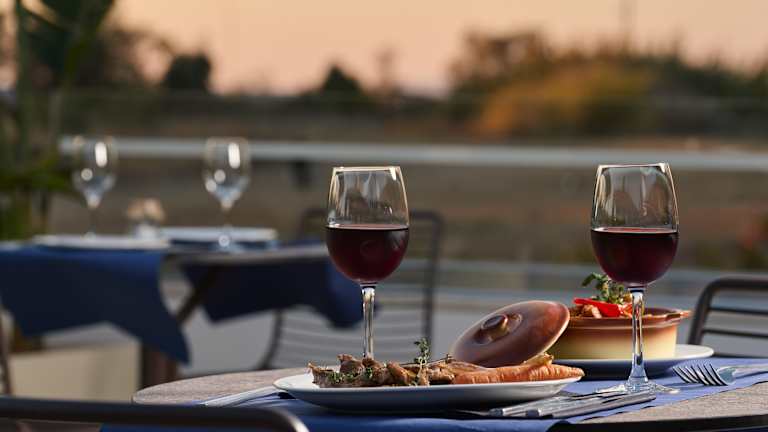 Das Atlantica Thalassa Hotel bietet ein umfassendes All-Inclusive-Konzept. Die Verpflegung umfasst ein reichhaltiges Buffet zum Frühstück, Mittagessen und Abendessen sowie Snacks und Kuchen während des Tages. Der Hauptrestaurantbereich bietet verschiedene internationale und lokale Gerichte an, darunter auch vegetarische, vegane und glutenfreie Optionen. Zur Auswahl stehen mehrere Barbereiche, wie die Lobbybar und eine Poolbar, die Getränke und Snacks anbieten.