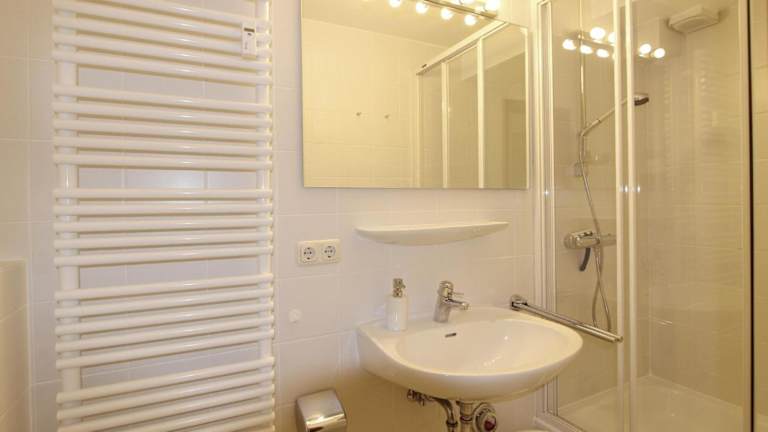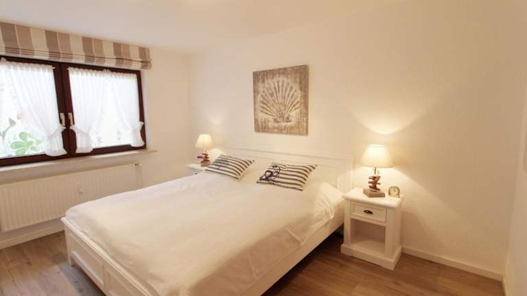 Die Ferienwohnung verfügt über ein Schlafzimmer, ein Badezimmer mit Dusche, einen TV sowie eine gut ausgestattete Küche mit Kühlschrank und Geschirrspüler.