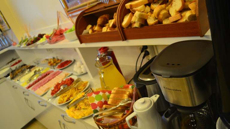 Der gastronomische Bereich umfasst ein Restaurant und eine Bar, die ein kontinentales oder asiatisches Frühstück in Buffetform anbieten. Es werden sowohl Frühstücksoptionen als auch Getränke an der Bar serviert.