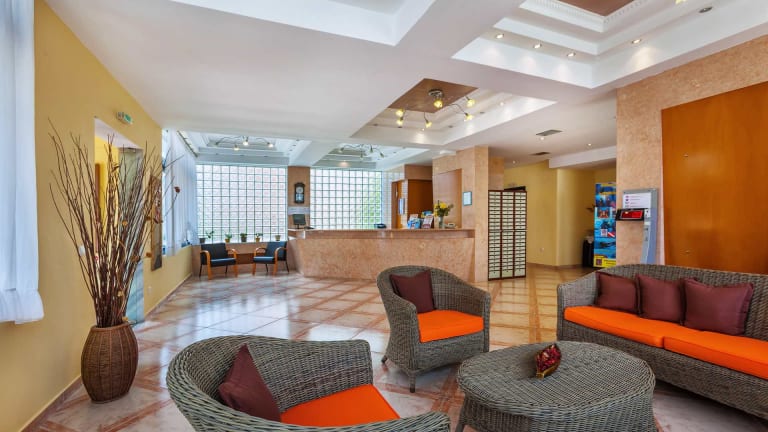 Das Hotel Atrium umfasst 110 Zimmer mit Klimatisierung. Das Haus hat eine Bar und ein Restaurant. Das Dienstleistungsangebot wird durch einen Weckdienst ergänzt. Dank der kostenlosen Parkplätze müssen sich die Urlauber nicht um einen Stellplatz sorgen.