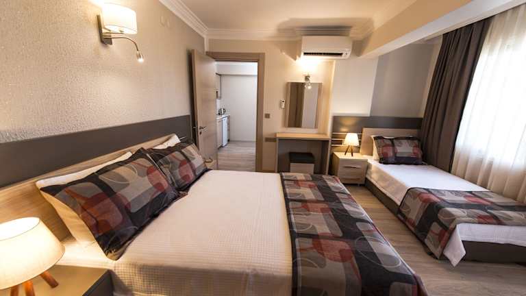 Die Unterkünfte im Atrium Apart Otel verfügen über kostenfreies WLAN, Klimaanlage und Sat-TV. Einige Zimmer bieten auch eine voll ausgestattete Küche mit Kühlschrank und ein Gemeinschaftsbad mit Dusche und kostenlosen Pflegeprodukten.