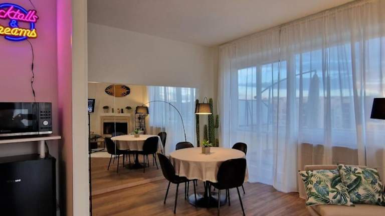 Die Ferienwohnung ist klimatisiert und bietet ein Schlafzimmer, ein Wohnzimmer, ein Badezimmer mit Bidet und Dusche sowie die Bereitstellung von Handtüchern und Bettwäsche.