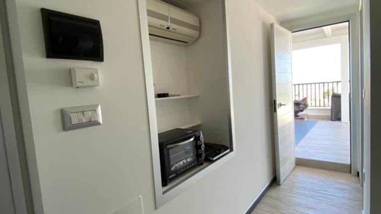Die Zimmer sind ausgestattet mit einem Kleiderschrank, einer Kaffeemaschine, einem Kühlschrank, einem Ofen, einem Safe, einem Flachbild-TV sowie einer Terrasse. Jedes Zimmer verfügt über ein eigenes Badezimmer mit einem Bidet. Bettwäsche und Handtücher sind ebenfalls vorhanden.