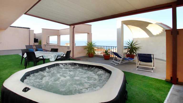 Verbringen Sie einen entspannten Urlaub im Attico vista mare con terrazza e spa riscaldata in Santo Stefano di Camastra. Das Apartment bietet einen eigenen Pool, kostenfreies WLAN und Parkplätze sowie einen Whirlpool. Genießen Sie den Außenpool, den Garten und die Terrasse sowie den Blick auf die Stadt. Das Apartment verfügt über ein Schlafzimmer, ein Wohnzimmer, eine voll ausgestattete Küche und ein Badezimmer. Handtücher und Bettwäsche werden gestellt. Entspannen Sie am Strand Villa Margi oder erkunden Sie die Bastione Capo Marchiafava in der Nähe. Der Flughafen Palermo-Punta Raisi ist ca. 129 km entfernt.