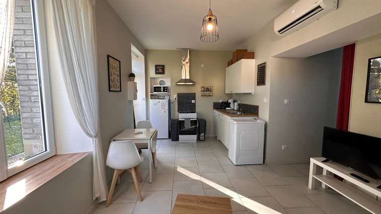 Das Au 157 - Locations Contrexéville in Contrexéville, Lothringen, bietet komfortable Unterkünfte mit kostenfreiem WLAN und kostenfreien Privatparkplätzen. Das Apartment verfügt über eine Terrasse mit Blick auf den Garten, einen gemütlichen Sitzbereich und eine voll ausgestattete Küche. Genießen Sie die zahlreichen Annehmlichkeiten wie einen Kinderspielplatz, einen Grillplatz und ein Casino direkt vor Ort. Die Lage des Hotels bietet zudem eine gute Anbindung an den Golfplatz Vittel Ermitage und das Fort Bourlémont.