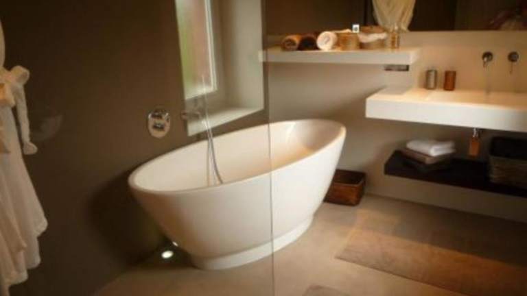 Das Ferienhaus verfügt über eine ausgestattete Küche mit Kühlschrank, Geschirrspüler und Ofen, ein Wohnzimmer mit Sitz- und Essbereich, zwei Schlafzimmer sowie ein Badezimmer mit Dusche und Badewanne. Handtücher und Bettwäsche werden bereitgestellt.
