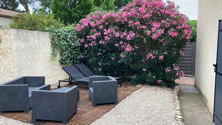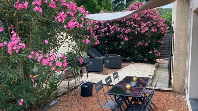 Das Au cœur de la Pinède de 1 à 4 personnes in Langlade bietet Ihnen ein komfortables Ferienhaus mit einer Terrasse und einem Gartenblick. Genießen Sie die ruhige Lage und profitieren Sie von kostenfreien Privatparkplätzen und WLAN. Das Ferienhaus verfügt über 2 Schlafzimmer, eine voll ausgestattete Küche und ein Badezimmer. Entspannen Sie im Außenpool, erkunden Sie die Umgebung beim Wandern oder Radfahren und nutzen Sie die Grillmöglichkeiten im Garten.