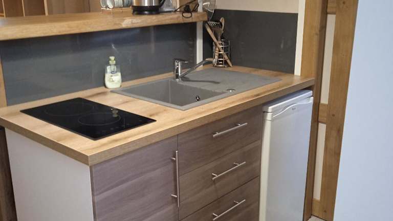 Die Ferienwohnung besteht aus einem Schlafzimmer, einer Küche und einem Badezimmer. Handtücher und Bettwäsche werden zur Verfügung gestellt.