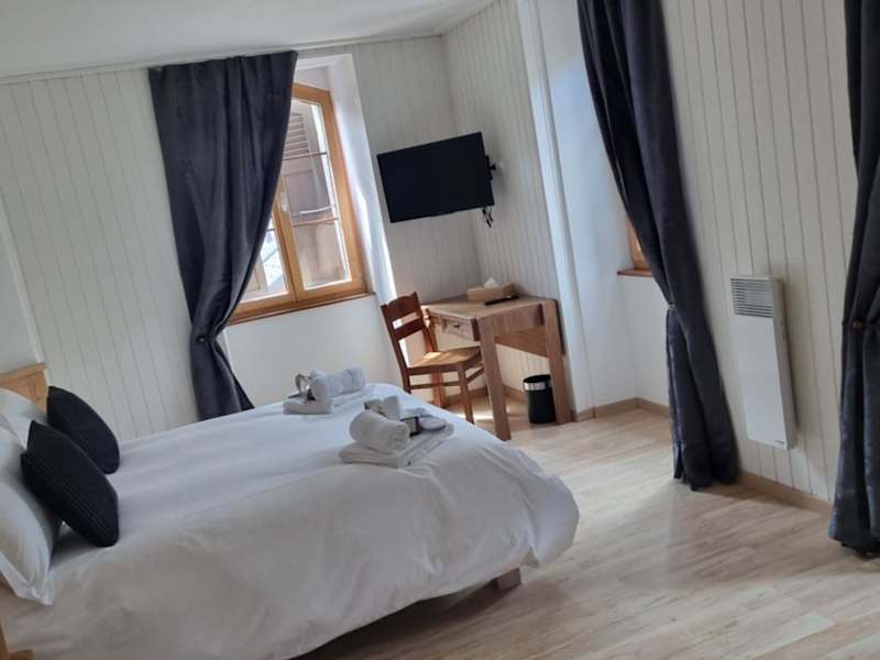 Die Zimmer in der Auberge de la Bourgeoisie sind gemütlich und komfortabel eingerichtet. Jedes Zimmer verfügt über einen Schreibtisch, ein eigenes Bad mit Dusche und kostenlosen Pflegeprodukten sowie kostenfreies WLAN. Einige Zimmer bieten zudem einen Balkon, von dem aus Sie den herrlichen Bergblick genießen können. Die Zimmer sind mit Bettwäsche und Handtüchern ausgestattet, um Ihren Aufenthalt so angenehm wie möglich zu gestalten.