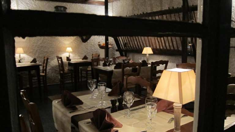 Im Restaurant das Auberge des Deux Rivières wird von den Eigentümern Robert und Philip traditionelle, regionale Küche serviert. Das Abendessen mit Halbpension bietet eine Auswahl an Gerichten, die vom Küchenchef zusammengestellt werden. Das Restaurant ist montags und dienstags geschlossen, bietet jedoch ein festgelegtes Menü an diesen Tagen an.