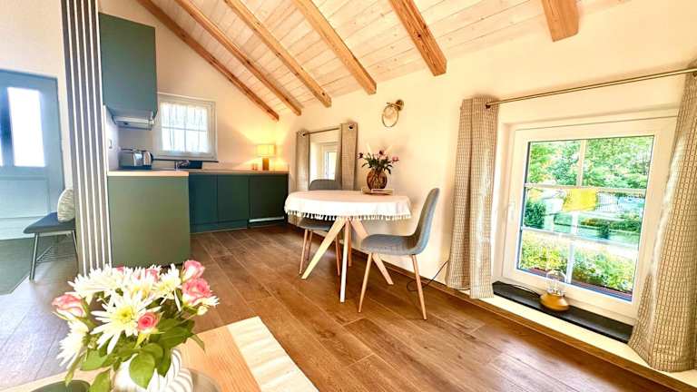 Die Ferienwohnung besteht aus einem Schlafzimmer, einem Wohnzimmer, einer voll ausgestatteten Küche mit Kühlschrank und Kaffeemaschine sowie einem Badezimmer mit Dusche und kostenlosen Pflegeprodukten. Handtücher und Bettwäsche werden bereitgestellt.