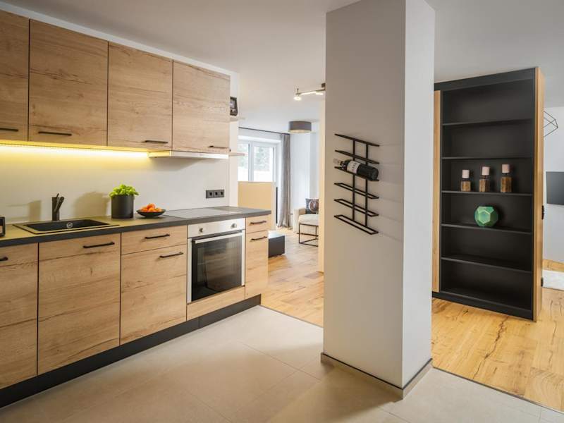Die Apartments verfügen über eine voll ausgestattete Küchenzeile, die mit einem Kühlschrank, einem Geschirrspüler, einem Ofen, einer Mikrowelle, einer Minibar, einer Kaffeemaschine sowie einem Wasserkocher ausgestattet ist. Zudem gibt es ein eigenes Badezimmer mit einer Dusche und kostenlosen Pflegeprodukten.