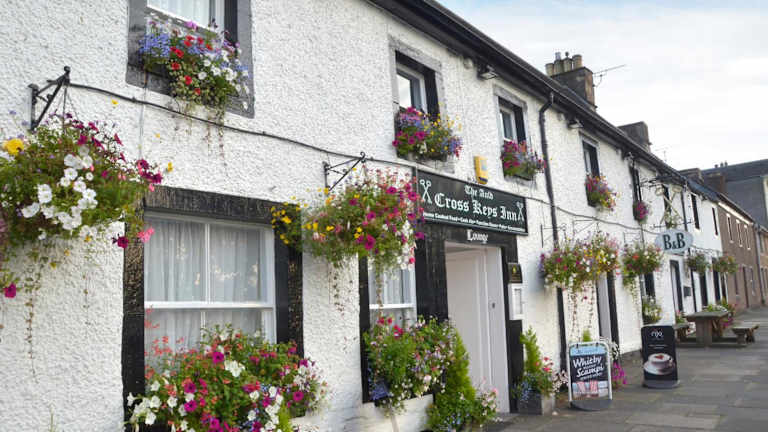 Auld Cross Keys Inn ist eine Nichtraucherunterkunft, die Übernachtungsmöglichkeiten mit einem Garten, einem kostenlosen Privatparkplatz, einem Restaurant und einer Bar anbietet. Darüber hinaus verfügt das Hotel über Familienzimmer und eine Sonnenterrasse.