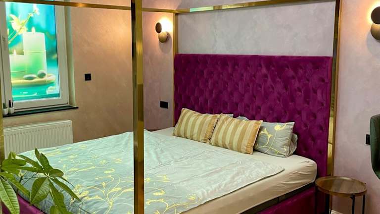 Aura Apartment und Spa Oberhausen bietet Übernachtungsmöglichkeiten mit einem Fokus auf Entspannung. Zu den Annehmlichkeiten gehören eine Sauna und ein Whirlpool. Die Unterkunft wird von einem privaten Gastgeber geführt. Es gelten bestimmte Regeln, unter anderem ist das Feiern von Junggesellenabschieden nicht erlaubt. Das Mindestalter für den Check-in beträgt 18 Jahre.