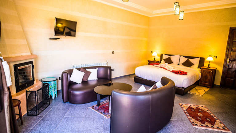 Das Restaurant des Hotels serviert köstliche marokkanische Küche und bietet täglich Frühstück und Halbpension an. Gäste können auch Picknicks bestellen.