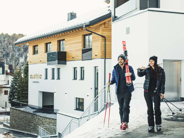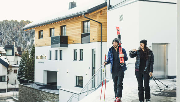 Herzlich Willkommen in der neuen Gemütlichkeit des Austria Aparthotel. Wir, die Familie Walser, haben aus Altbewährtem und Liebgewonnenem einen neuen Lieblingsplatz für Ihre verdiente Auszeit am Sonnenplateau Tirols gemacht. In unseren 11 Apartments ist Platz für alpine Urlaubsträume. Auf kuscheligen 32 m² bis großzügigen 122 m². Wenn Sie die die Bergnatur mögen, gutes Design schätzen und auf unkomplizierte Ferien stehen, werden Sie unser Austria Aparthotel bestimmt lieben. Bei uns wohnen Sie erste Reihe fußfrei und sind in nur wenigen Schritten mittendrin in der wunderbaren Fisser Bergwelt. Denn das Austria Aparthotel ist durch einen Tunnel mit der Skipiste verbunden. Gemütlicher kann ein Tag auf den Pisten und Wanderwegen von Serfaus-Fiss-Ladis kaum beginnen.