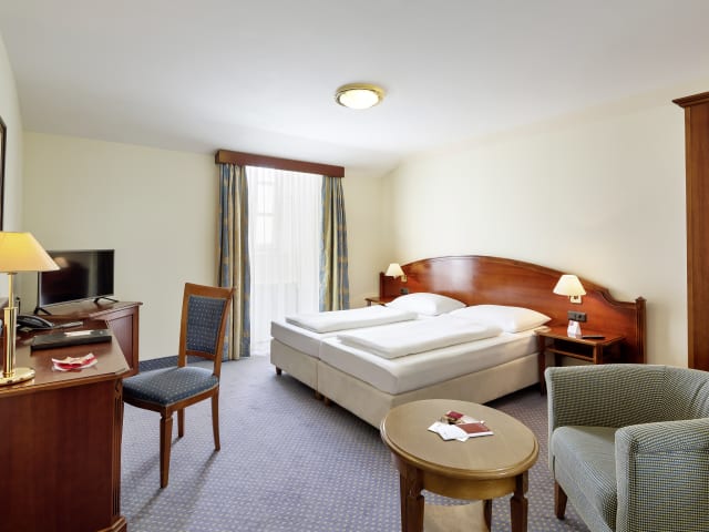 Residieren Sie wie einst Graf Lascy in seinem Schloss, in dem sich heute modernster Komfort mit herrschaftlichem Ambiente vereint. Eleganz und Stil erwarten Sie. Die komfortabel eingerichteten Zimmer und Suiten laden zum Entspannen und Wohlfühlen ein. Im überwiegenden Teil der Zimmer können Sie einen einzigartigen Panoramablick genießen.