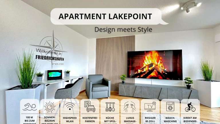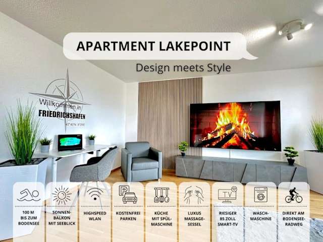 Auszeit Apartment LAKEPOINT bietet einen Gartenblick sowie Übernachtungsmöglichkeiten mit einer Gemeinschaftslounge und einem Balkon. Die Unterkunft verfügt über eine Terrasse und punktet mit Seeblick. Ein kostenloser Privatparkplatz ist ebenfalls vorhanden.