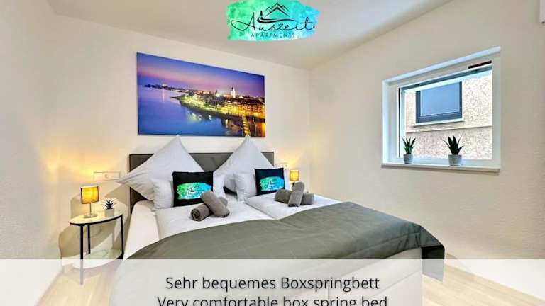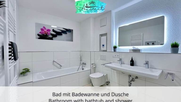 Die Ferienwohnung bietet zwei Schlafzimmer, ein Wohnzimmer, einen Kabel Flachbild-TV sowie eine gut ausgestattete Küche. Zudem stehen zwei Badezimmer mit Dusche und Badewanne zur Verfügung. Handtücher und Bettwäsche werden bereitgestellt.