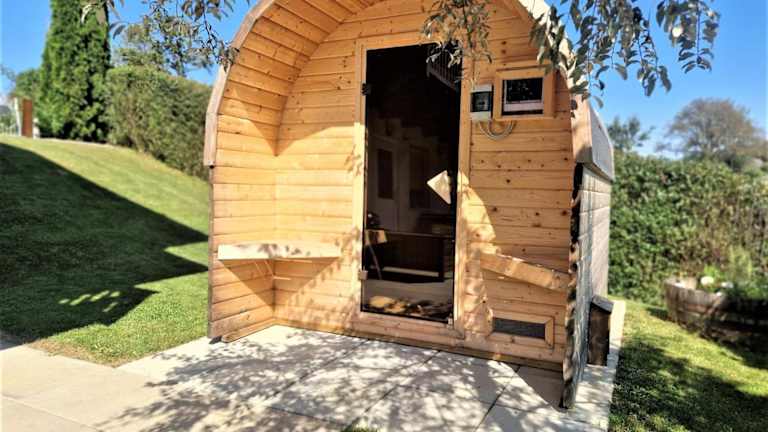 Das Ferienhaus umfasst zwei Schlafzimmer, ein Wohnzimmer und eine voll ausgestattete Küche mit einem Kühlschrank und einer Kaffeemaschine. Das Badezimmer ist mit einer Dusche und einem Haartrockner ausgestattet. Handtücher und Bettwäsche werden bereitgestellt.