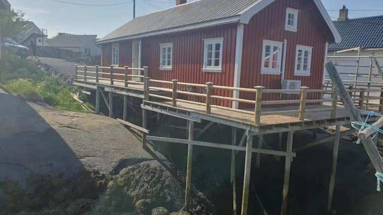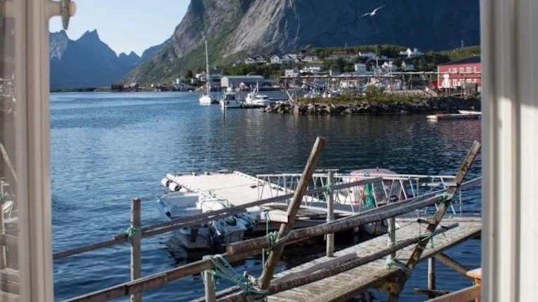 Die Unterkunft befindet sich in Reine, mit Blick auf den Reinebringen. Der nächste Flughafen, der Hubschrauberlandeplatz Værøy, ist 43 km entfernt.