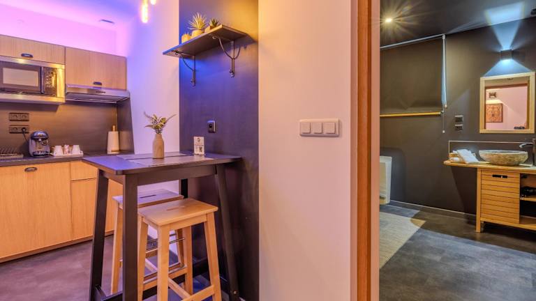 Die Unterkunft im Autrement Spa ist komfortabel und stilvoll eingerichtet. Jedes Zimmer verfügt über einen Flachbild-TV und ein eigenes Badezimmer mit Dusche, Whirlpool und Haartrockner. Die Küche ist gut ausgestattet mit einem Kühlschrank, einer Mikrowelle und einem Kochfeld. Es gibt auch einen gemütlichen Sitz- und Essbereich.