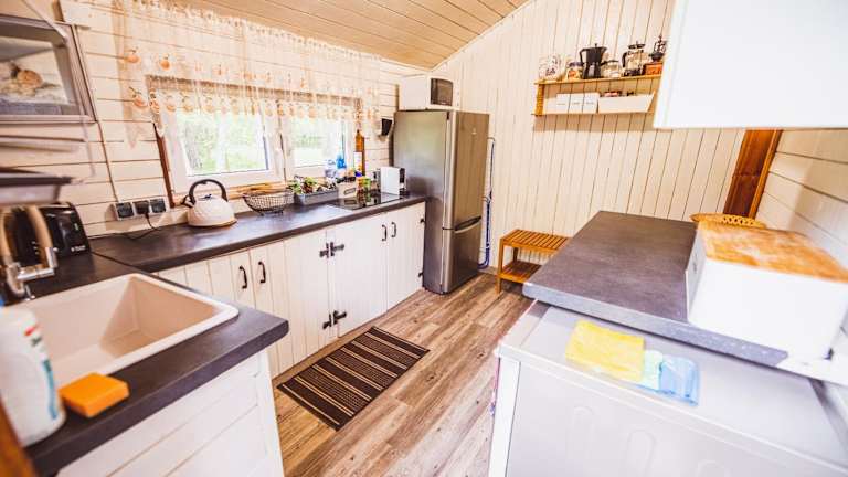 Das Chalet bietet zwei Schlafzimmer, ein Wohnzimmer, eine voll ausgestattete Küche mit Kühlschrank und Wasserkocher sowie ein Badezimmer mit Dusche und kostenlosen Pflegeprodukten. Handtücher und Bettwäsche sind vorhanden.