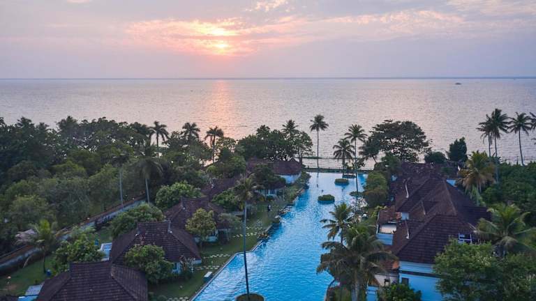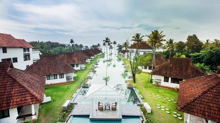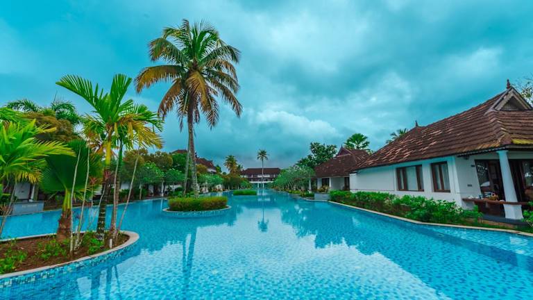 Das Rhythm Kumarakom ist ein Resort am Ufer des Vembanad-Sees in Kumarakom, das mit einem 150 Meter langen Außenpool und einem Ayurveda-Spa und Wellnesscenter beeindruckt. Das Resort bietet kostenfreies WLAN und komfortable, klimatisierte Unterkünfte mit einem eigenen Bad, Sat-TV und einem Sitzbereich. Von vielen Zimmern aus genießen Sie einen herrlichen Blick auf den See und den Pool. Das Resort bietet außerdem eine 24-Stunden-Rezeption, eine Terrasse, Unterhaltungspersonal, einen Spielebereich und einen Tourenschalter. Kostenlose Parkplätze stehen zur Verfügung. Das Vembanad Poolside Restaurant verwöhnt Sie mit indischen, chinesischen und kontinentalen Gerichten, während das Hummingbird Indoor Restaurant auf Meeresfrüchte spezialisiert ist.