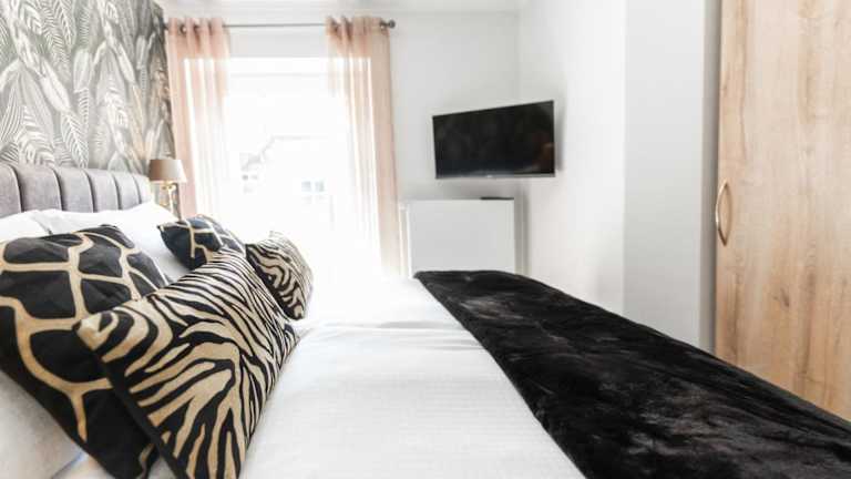 Die Ferienwohnung bietet zwei Schlafzimmer sowie eine voll ausgestattete Küche mit Kühlschrank und Geschirrspüler. Zudem steht ein Badezimmer mit Dusche und Haartrockner zur Verfügung. Handtücher und Bettwäsche werden bereitgestellt.