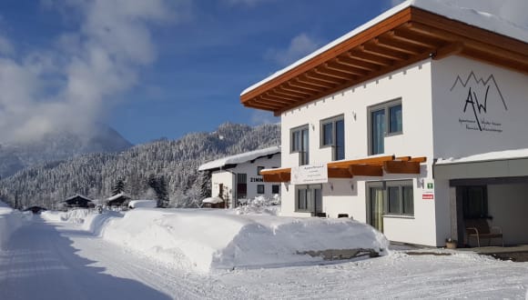 Das Apartment ist ca. 59 m2 groß und bietet einen großen Wohn-Essbereich mit Doppelschlafcouch, SAT-TV, Einbauradio mit Bluetoothverbindung, Essgelegenheit und einer Küche mit vollwertiger Ausstattung. Die 2 Doppelzimmer mit Echtholzboden, sind mit Boxspringbetten und einem Schrank ausgestattet. Im Badezimmer erwartet Sie eine Regendusche mit extra Handbrause, ein Handtuchtrockner, ein Waschbecken, ein Haarfön und Handtücher. Das WC ist getrennt. Der eigene Garten mit großer Terrasse lädt zum verweilen ein. WLan ist im gesamten Apartment kostenfrei verfügbar. Für Ihre Winter- oder Sommerausrüstung steht ein abschließbarer Abstellraum zur Verfügung.