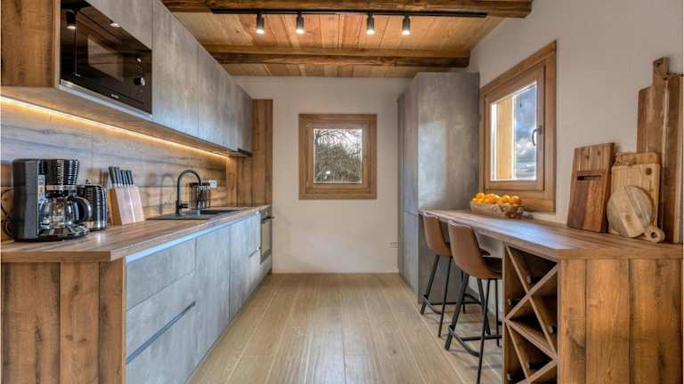 Die Unterkunft ist mit einer voll ausgestatteten Küche ausgestattet, die unter anderem einen Kühlschrank umfasst. Grillmöglichkeiten sind ebenfalls vorhanden.
