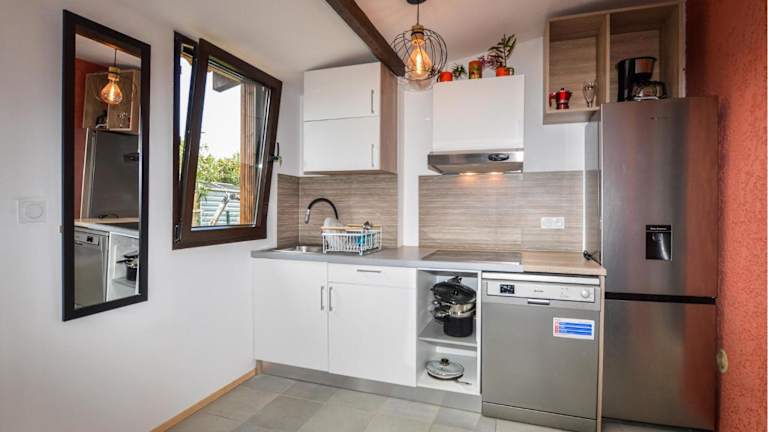 Das Ferienhaus ist mit zwei Schlafzimmern ausgestattet und bietet einen TV. Die Küche ist mit einem Kühlschrank und einem Geschirrspüler ausgestattet.