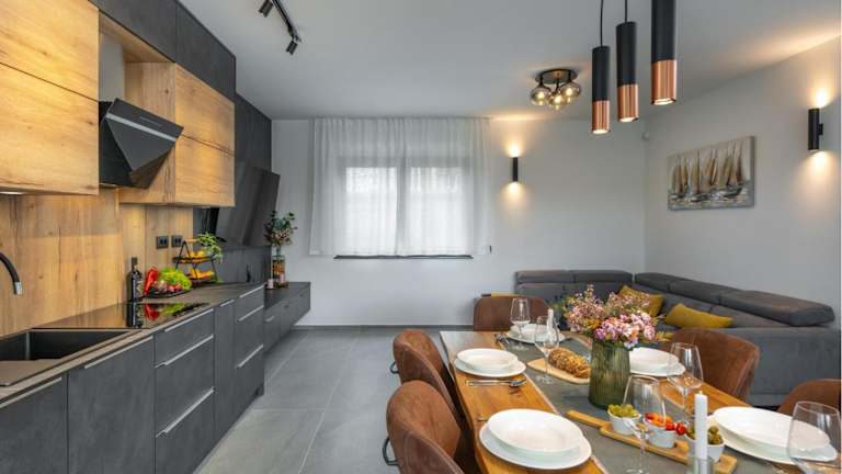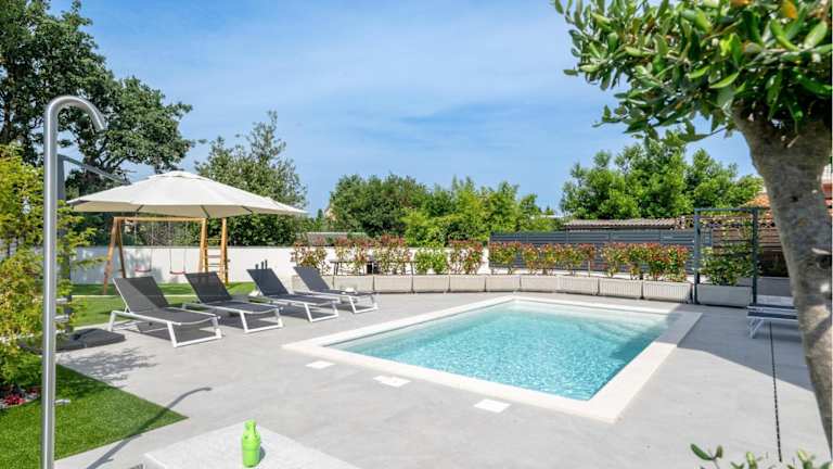 Das Ferienhaus liegt in Štinjan, weniger als 900 Meter vom Strand Valbandon entfernt. Der Strand Hidrobaza ist 1,1 km entfernt. Weitere Sehenswürdigkeiten in der Nähe sind der Nationalpark Brijuni (4,1 km) und das Amphitheater Pula (6 km). Der Flughafen Pula ist 9 km von der Unterkunft entfernt.
